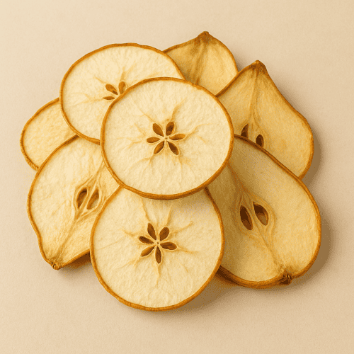 Feliem cu mare atentie fiecare fruct in parte, in asa fel incat fiecare felie sa aiba aceeasi grosime. Urmeaza procesul de deshidratare la temeraturi de 50-60 de grade pentru aproximativ 10 ore