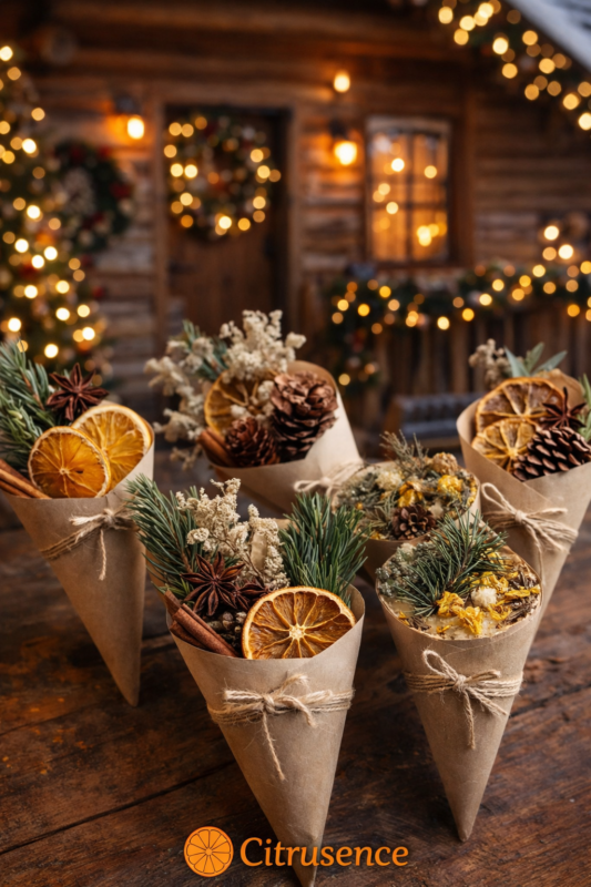 Se combină cu lumânări, obiecte handmade și ambalaje kraft.