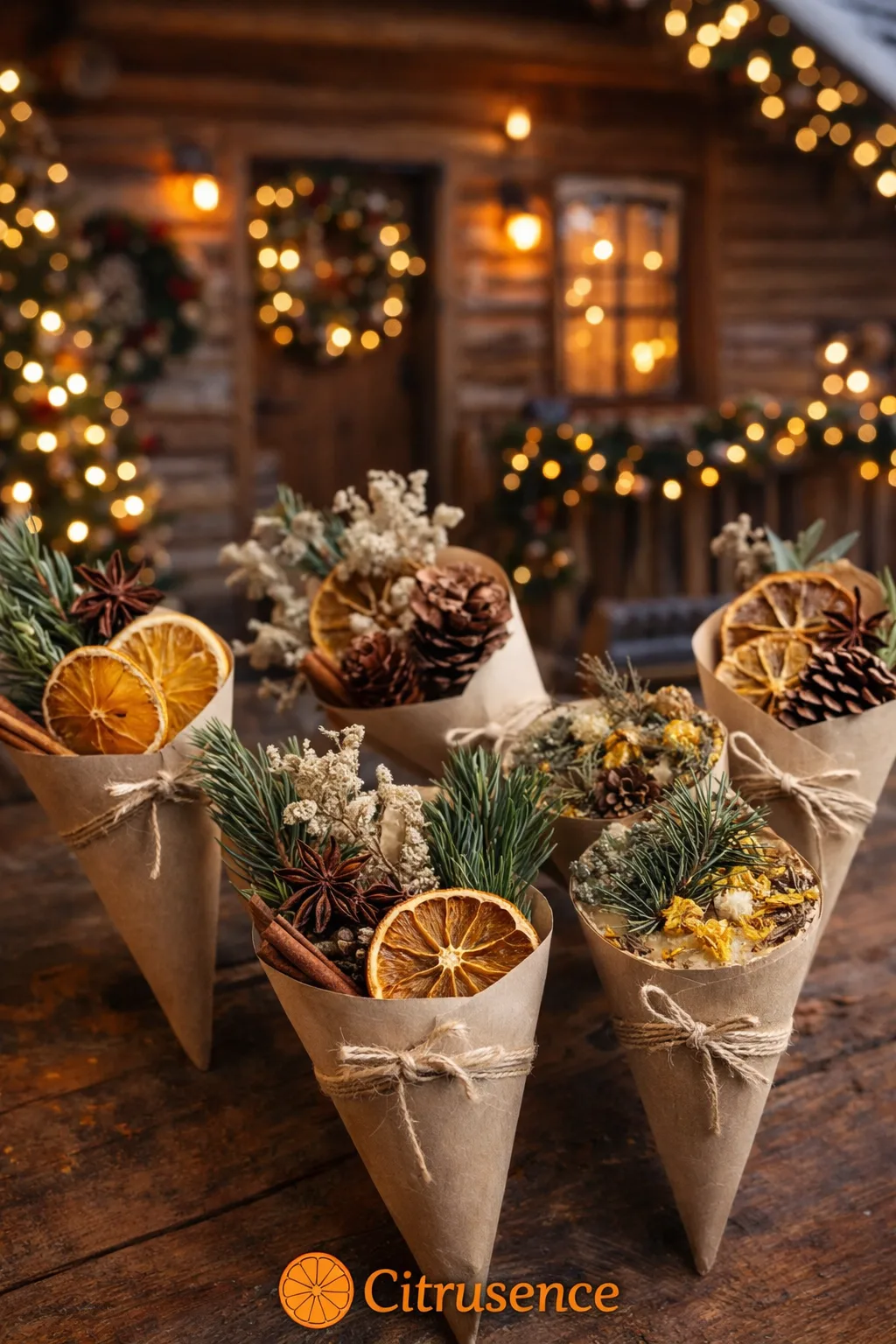 • plante uscate, felii de citrice, scorțișoară, conuri de pin